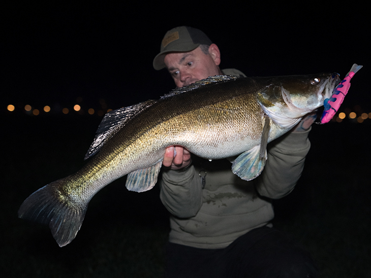 Het laatste avondje van het seizoen is een feit. Even resumé, het begon eigenlijk best belabberd maar vanaf het najaar was het toch echt wel een feestje met prachtige baarzen én snoekbaarzen die in chronologische volgorde met regelmaat over de 50+ en 80+ gingen. Wauw, dat was ook voor mij écht wel even geleden. Het is ook niet raar dat Kay en ik er op de laatste toegestane avond van het seizoen nog even op uit gaan alvorens we twee maanden op een houtje moeten gaan bijten. Het weer is er goed voor, we verwachten niet te veel en hopen dat we nog zo’n dikke snoekbaars kunnen vinden. Het zou toch een fantastische afsluiter zijn? Snel gaan de eerste aasjes te water, hopend op die ene zo herkenbare “droge” tik maar vooralsnog blijven die uit. Ze blijven zelfs zolang uit dat ik begin te twijfelen of ze er nog wel zitten? Wáár zouden ze zitten? Zijn ze verder gezwommen? Nadat de twijfel toeslaat besluiten we samen om aan de wandel te gaan en stukken te gaan bevissen waar we anders eigenlijk nooit vissen in de hoop dat we ze tegen gaan komen. Ergens halverwege de avond komt dan tóch die verlossende beuk op de hengel wanneer wederom de Vividus bij het uit het water tillen nog even knoerthard gegrepen word. Een mooie zeventiger word vereeuwigd waarna we enthousiast verder vissen. Het is wederom gelukt, hoppa!