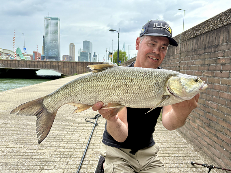 Daaronder komt regelmatig een stel vinnen boven water, een tafereel wat ik nog niet vaak heb gezien. Paul werpt zijn pilker waarna nagenoeg direct een kromme hengel volgt. Niet veel later mag hij zijn eerste roofblei van het seizoen van dichtbij bewonderen. Het blijkt de start van een “feed frenzy” van anderhalf a twee uur waarbij vriend roofblei vaak met meerderen tegelijk door het oppervlakte splashen. Prachtig én tegelijkertijd frustrerend want “pakken” doen ze maar af en toe. Nadat roofblei twee voor Paul zich uit het net heeft gewurmd is het me-time en mag ook ik mijn eerste van de dag van dichtbij bekijken. Een mooie dikkert die na het kieken weer netjes teruggezet word. Goh, echt een mooie vis, blij mee. Ook nummer twee volgt vrij snel na nummer een en wanneer we even pauzeren en weer terug gaan naar de stek volgt na een tijdje ook nummer drie van de dag. Goh wat ben ik toch een mazzelaar. Na deze vis begint de activiteit stilletjes aan af te nemen en komen we zelf ook wel tot de conclusie dat het voor vandaag wel een “done deal” is. Het was taai vandaag, het was prachtig vandaag en voor het weer hadden we niet dichtbij thuis hoeven blijven. Op naar de volgende maar weer…